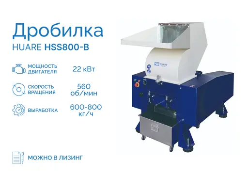 Высокая эффективность достигается благодаря применению качественных ножей, которые справляются даже с загрязненными типами пластиков.